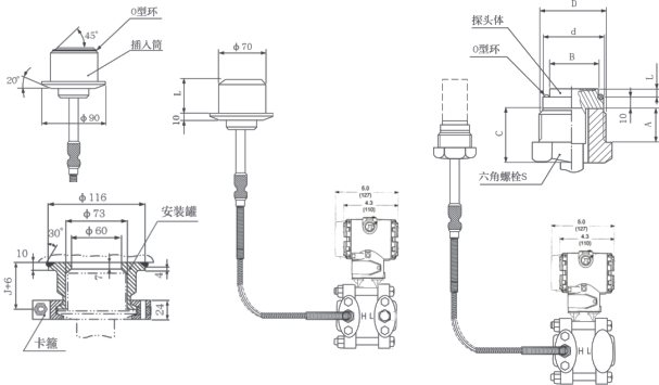 为了适应不同的安装需求,本系列变送器具有多种形式的远传装置供用户选择,变送器的主体结构与压力变送器相同。