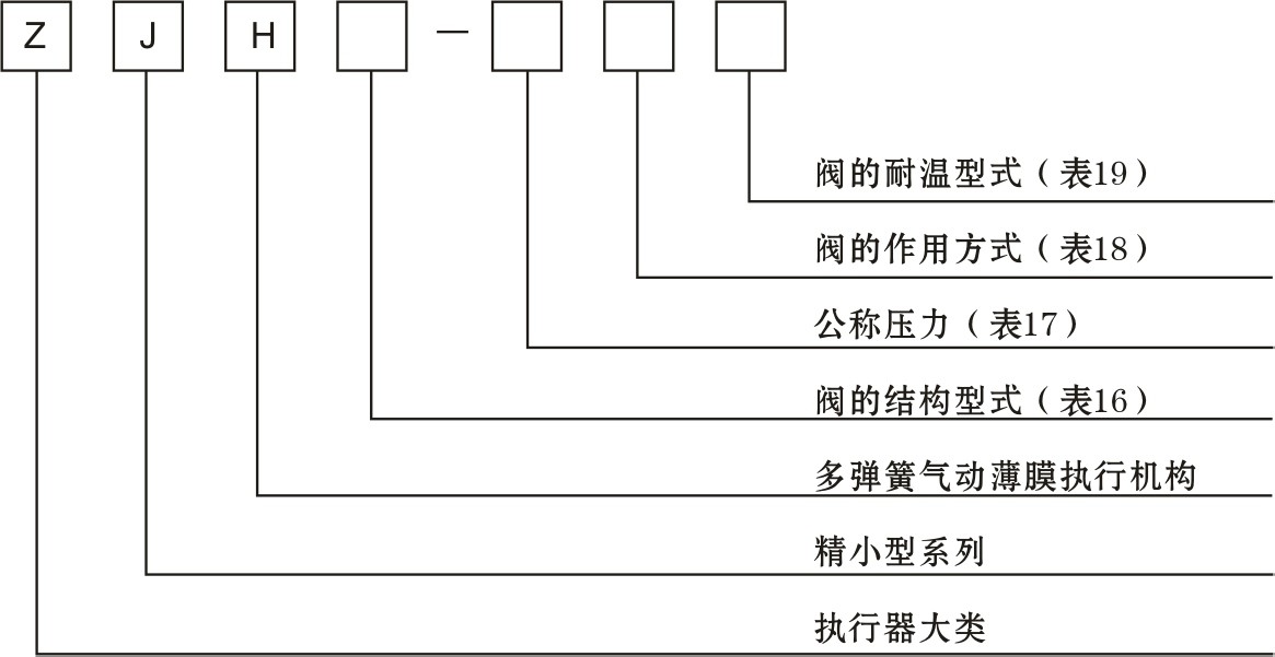本产品型号由两小节组成,节包括四位代号,表示本产品大类及组成的执行机构和阀的