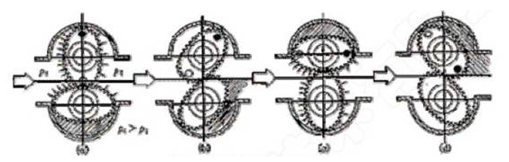 椭圆齿轮流量计工作原理图: