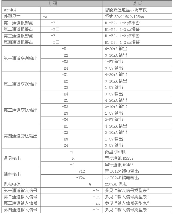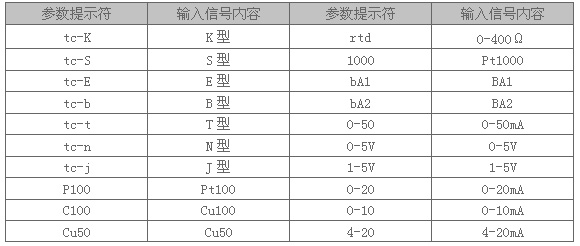五、输入信号类型表