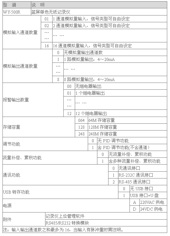 KR-500R万能输入压力记录仪,可输入标准电流、标准电压、频率、毫伏、热电偶、热电阻等信号。具有传感器隔离配电输出、继电器报警输出、变送输出、流量积算、温压补偿、历史数据转存、打印以及远程通讯功能。