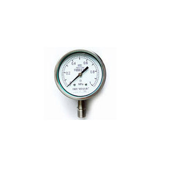 不锈钢压力表由导压系统(包括接头、弹簧管、限流螺钉等)、齿轮传动机构、示数装置(指针与度盘)和外壳(包括表壳、表盖、表玻璃等)所组成。外壳为气密型结构,能有效地保护内部机件免受环境影响和污秽侵入。对于在外壳内充液(一般为硅油或甘油)的仪表,能够抗工作环境振动较剧和减少介质压力的脉动影响。