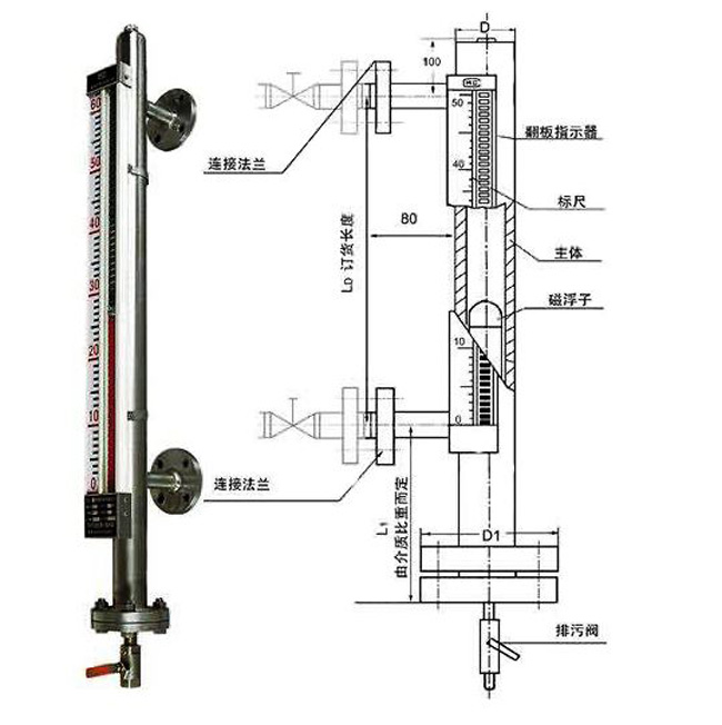 磁翻板液位计的最显著特点是液体介质与指示器完全隔离,所以在任何情况下都非常安全、可靠、耐用,而且各种型号的液位计配上液位报警、控制开关,可实现液位或界位的上、下限越位报警,控制或连锁;配上静压式液位变送器或干簧-电阻式液位变送器,可将液位,界位信号转换成二线制4-20mADC标准信号,实现远距离指示、检测、记录与控制。该系列磁翻板液位计可广泛适用于电力、石油、化工冶金环保、船舶、建筑、食品等各行业生产过程中的液位测量与控制。