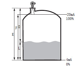 通过输入空罐高度E(=零点),满罐高度F(=满量程)及一些应用参数来设定,应用参